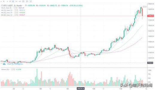 进入2020年以后除过3月份的黑天鹅事件导致比特币的价格严重失真下跌到了3800美元,这波上涨趋势截止到目前为止,最高点始终没能突破2万美元止步在了19500美元附近。11月26日美国的感恩节,也就是今天,比特币迎来了2000美元的下跌幅度,从19000 美元一路下跌至最近17000美元。