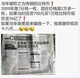 比特币有价格的时候,差不多一美元可以买1300比特币,现在要700万+美元才能买到1300美元,也就是暴涨了700多万倍。